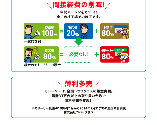 修理完成後、出庫前にお客様立会いで仕上がりをチェックしていただき、 万一ご納得いただけない場合は、何度でもやり直しさせて頂きます。
