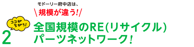 鈑金のモドーリーでは、同じ色なら新品パーツの約半額でご提供できるリサイクルパーツを使用しております。さらに私たちは、キズ・ヘコミ・事故修理の全国チェーンです。そのネットワークを最大限に生かして、即座に愛車と同じパーツをお探しすることができます。